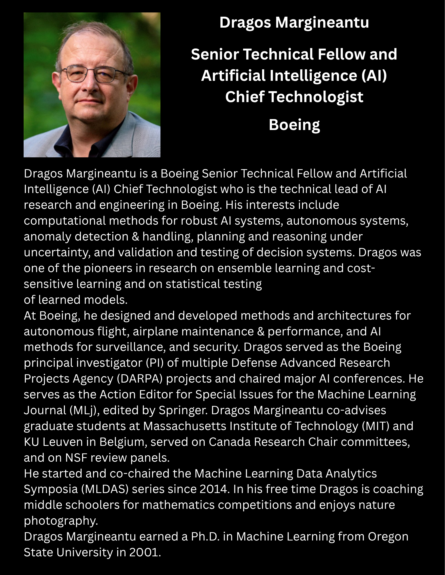 Keynote AI Systems in the Wild: Risk-aware Decision, Knowledge, and UnderstandingSenior Technical Fellow and Artificial Intelligence (AI) Chief Technologist, Boeing Location: Fowler Hall |