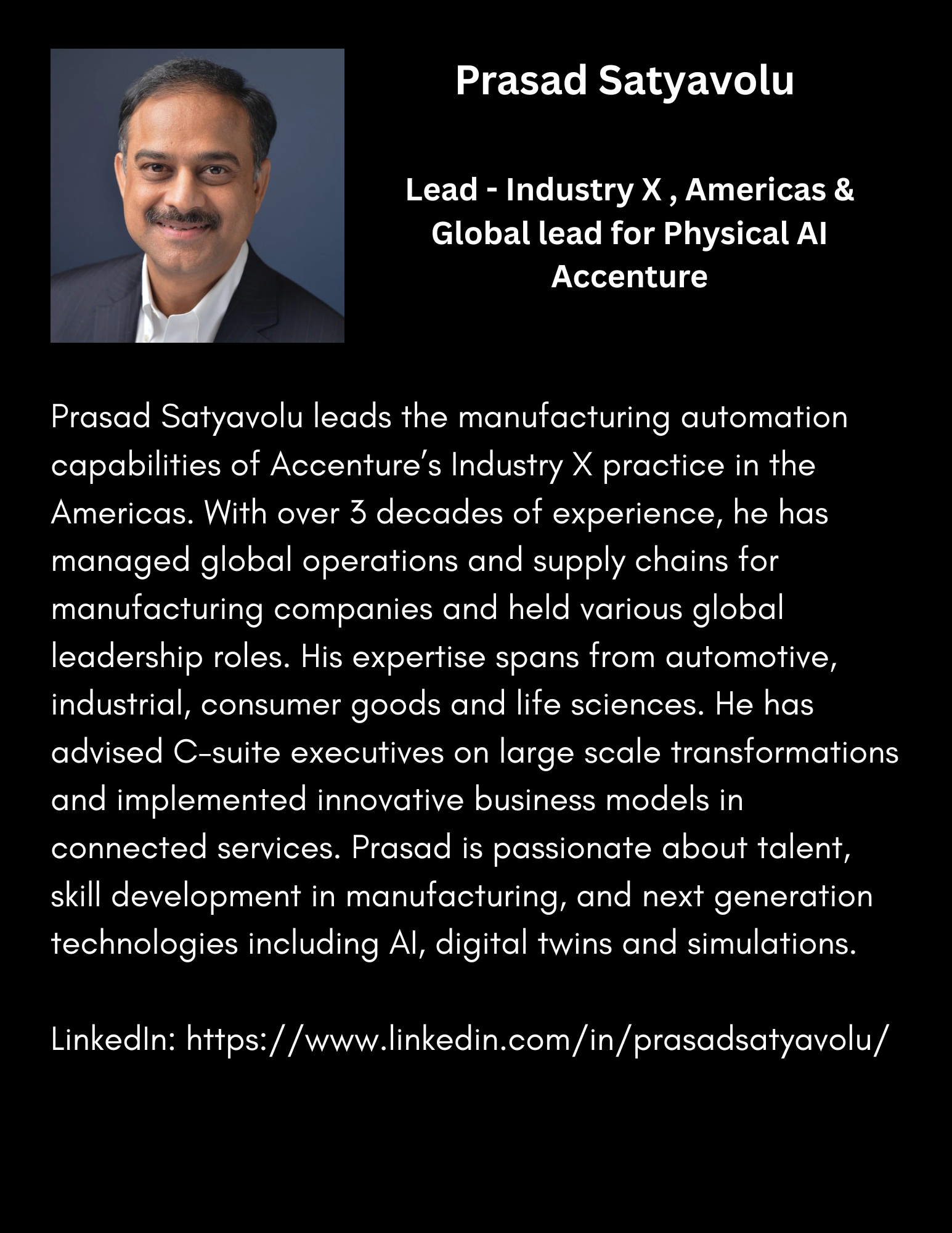 Keynote Lead - Industry X , Americas & Global lead for Physical AI Accenture Location: Fowler Hall |